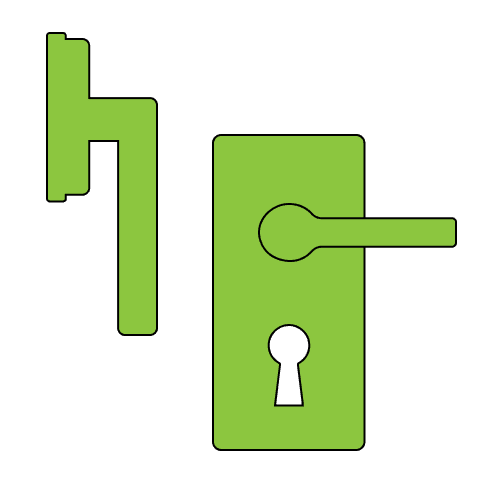 Door handles + hinges